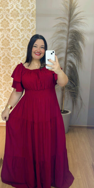 Vestido Longo Plus Size Viscolinho Azul Rebeca G3 G4
