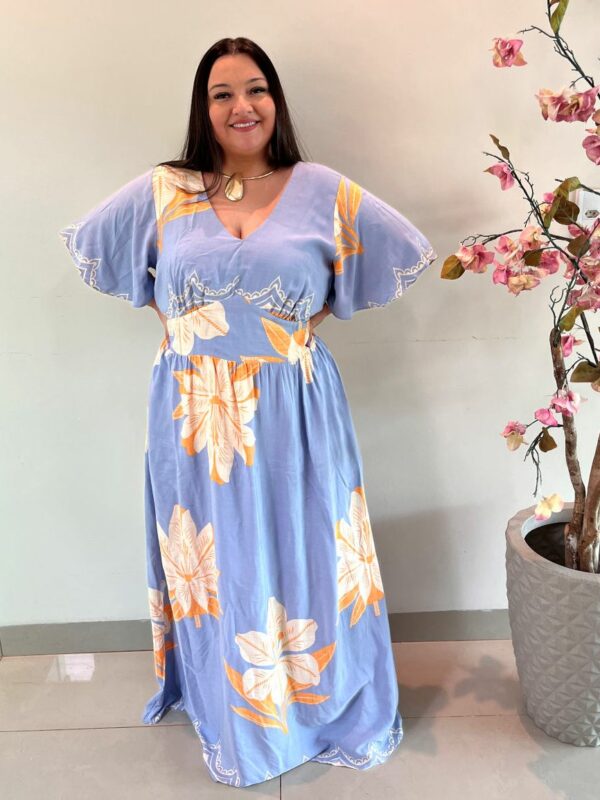 Vestido Longo Plus Size Viscose Azul Jessica G3