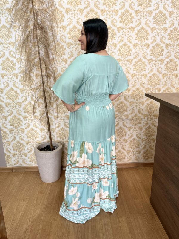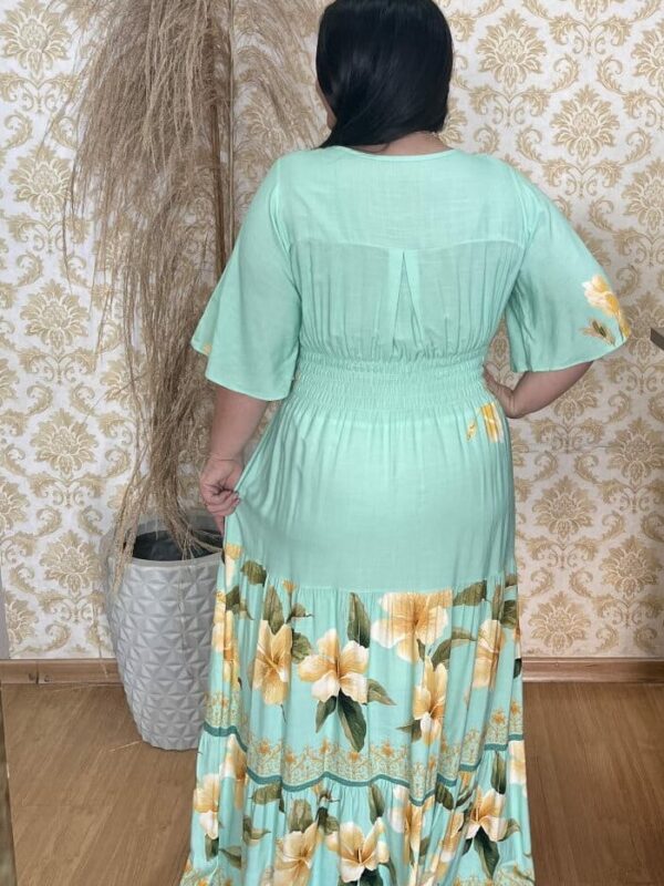 Vestido Plus Size Heloísa Viscose Verde Agua Estampado G1 G2 G3