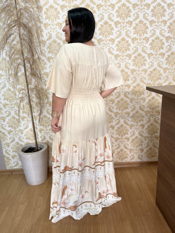 Vestido Plus Size Heloísa Viscose Bege Estampado G1 G3