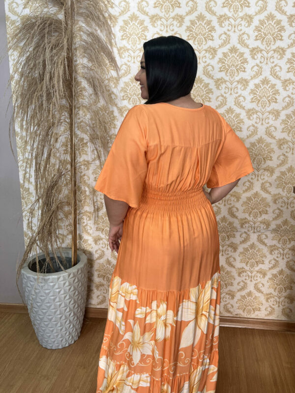 Vestido Plus Size Heloísa Viscose Laranja Estampado G1 G2 G3