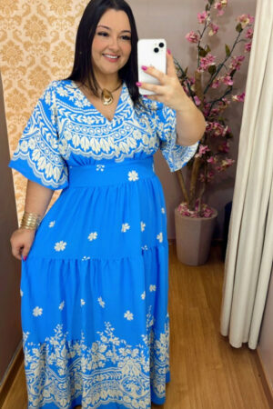 Vestido Plus Size Heloísa Azul G1 G2 G3
