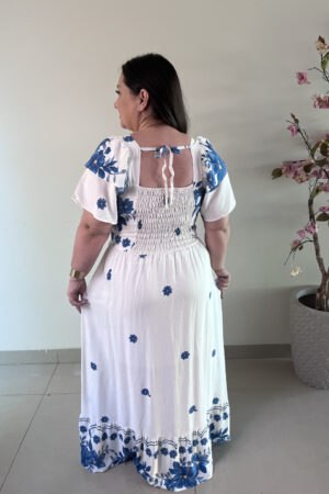 Vestido Longo Plus Size Branco Estampado Katia G1 G2
