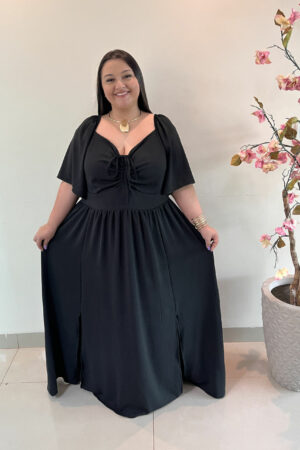Vestido Longo Plus Size Viscose Preto Jessica G3