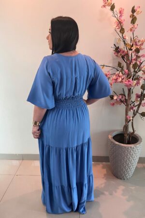 Vestido Longo Plus Size Viscolinho Azul Rebeca G3 G4