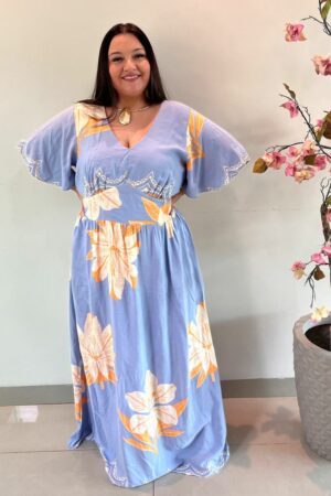 Vestido Longo Plus Size Viscose Azul Jessica G3