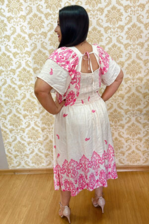 Vestido Midi Plus Size Eloah Branco Estampado G2