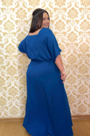 Medidas da modelo: 105 cm de busto, 110 cm de quadril