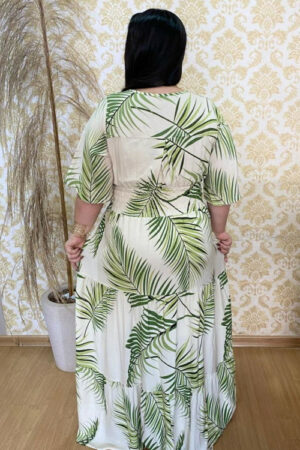 Vestido Plus Size Sofia Viscose Bege Estampado G1 ao G4