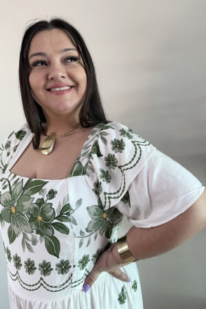 Este vestido longo plus size foi desenvolvido para oferecer conforto e elegância em qualquer ocasião. Produzido em tecido de viscoe leve e macio, não é transparente pois vem forrado e é ideal tanto para o dia a dia quanto para eventos especiais, com flores estampadas