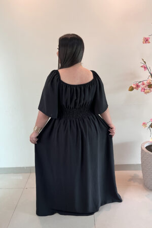 O Vestido Plus Size Marta é a escolha ideal para quem busca conforto, elegância e praticidade. Ele conta com elástico na cintura, garantindo melhor ajuste ao corpo, além de fendas na parte frontal que deixa mais elegante