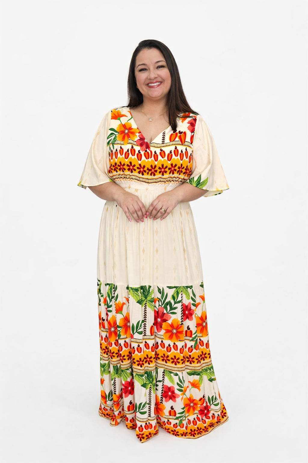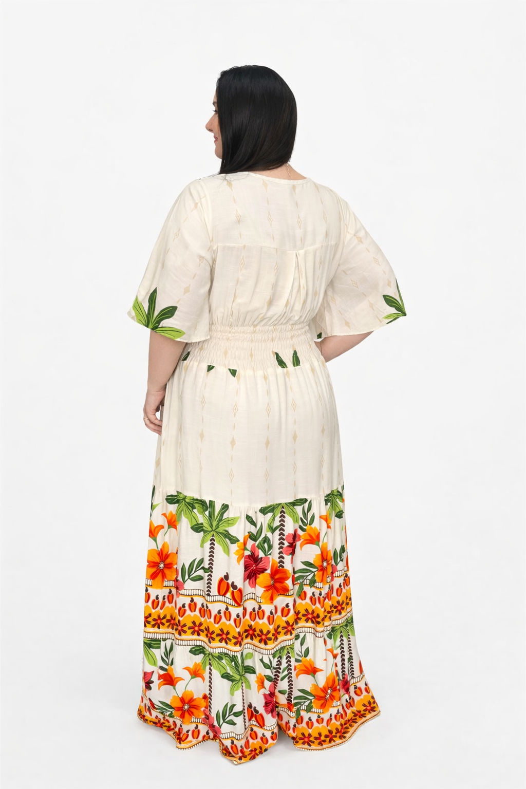 Vestido Plus Size Heloísa Viscose Bege Estampado G1 G3Vestido Plus Size Heloísa Viscose Bege Estampado G1 G3