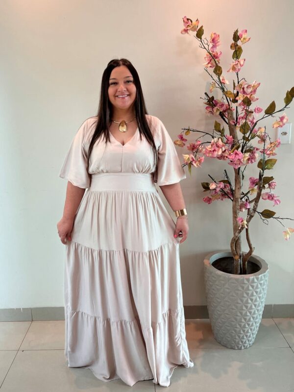 Vestido Plus Size Heloísa Viscose Bege G1 G2 G3Vestido Plus Size Heloísa Viscose Bege G1 G2 G3