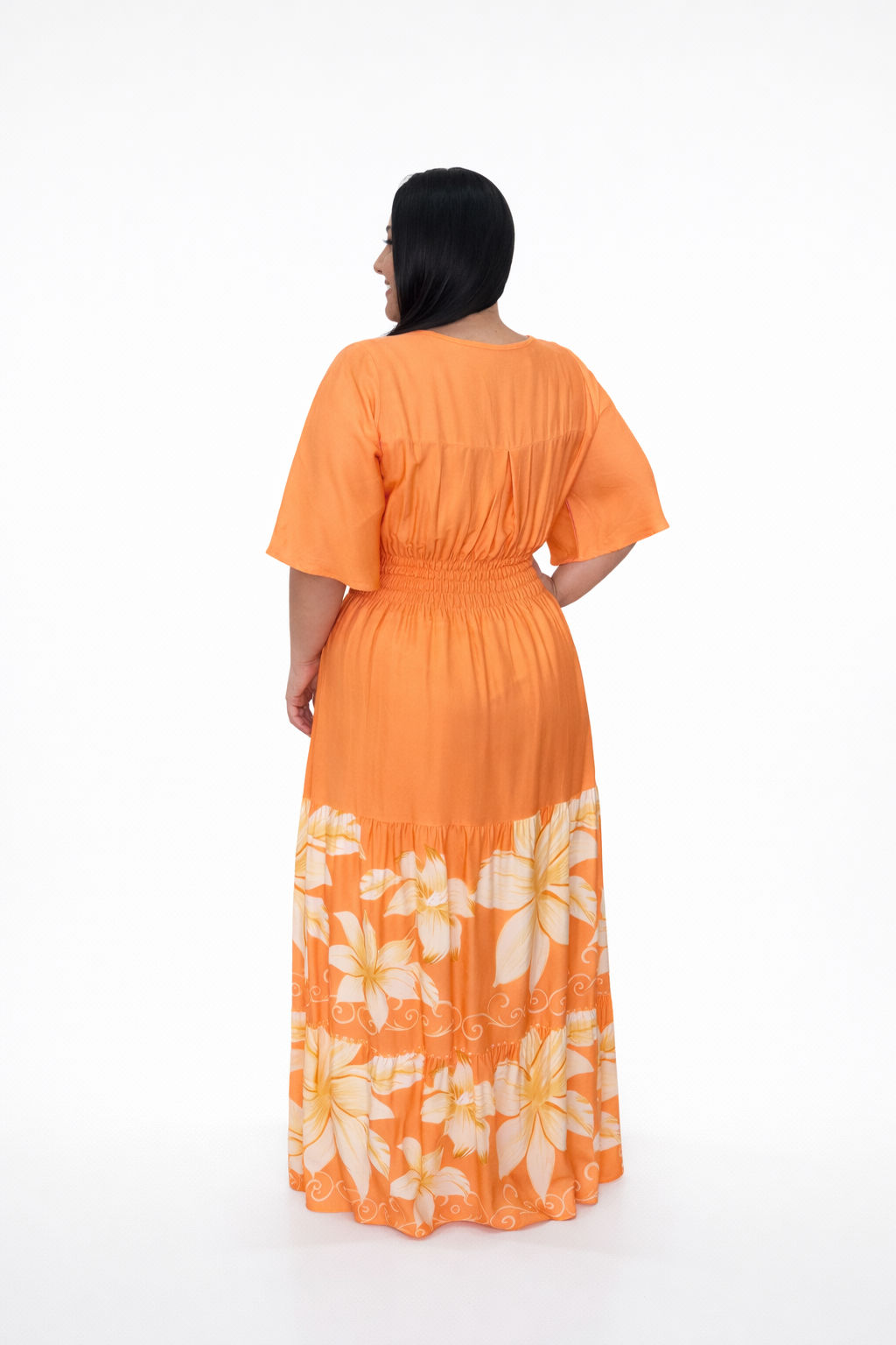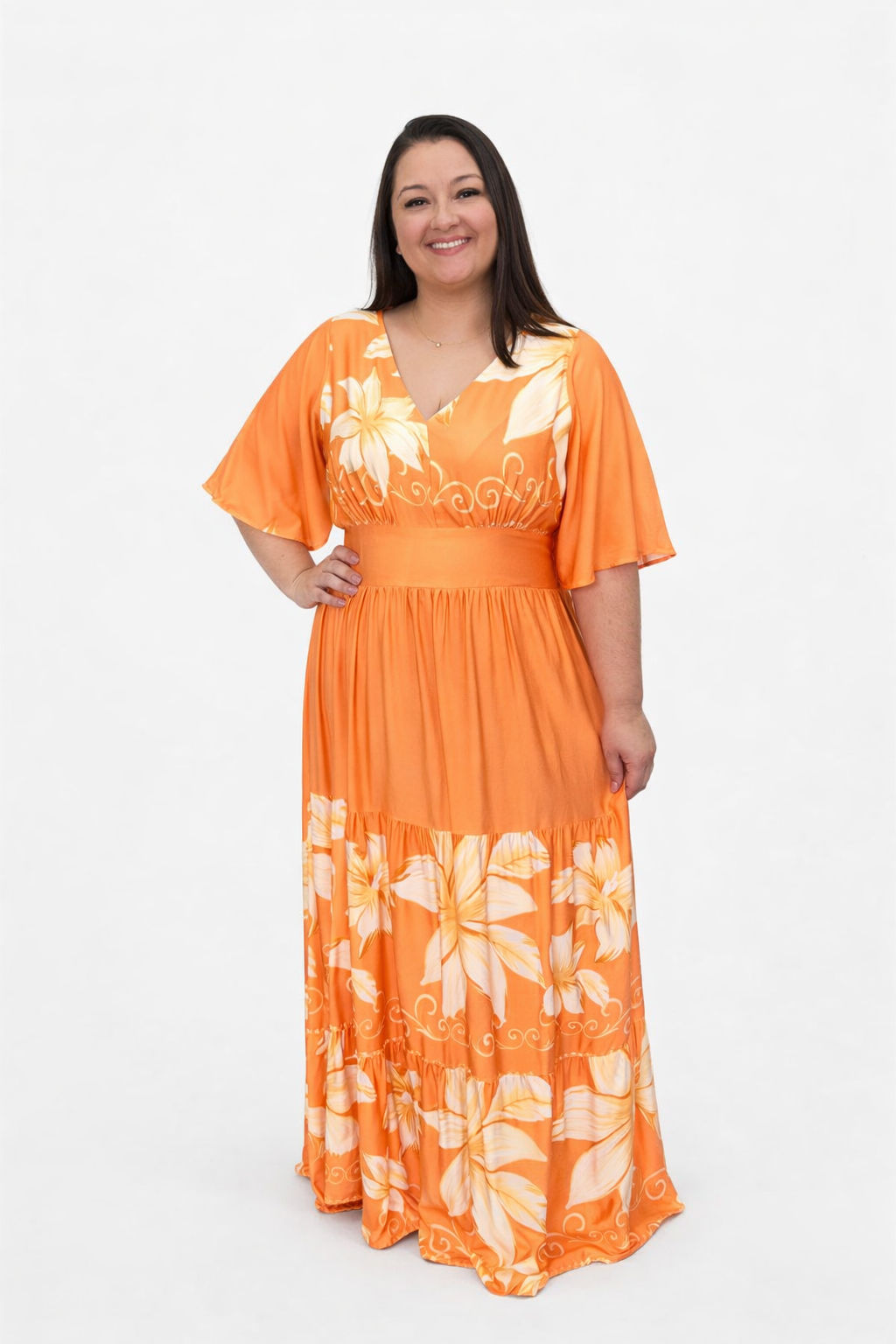 Vestido Plus Size Heloísa Viscose Laranja Estampado G1Vestido Plus Size Heloísa Viscose Laranja Estampado G1