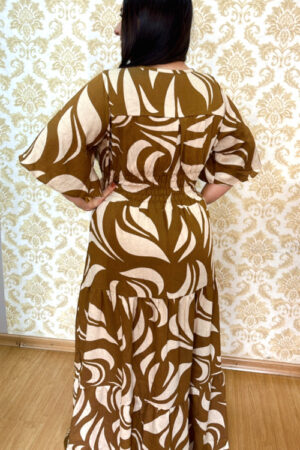 Vestido Plus Size Heloísa Viscose Marrom e Bege Estampado G2 G3