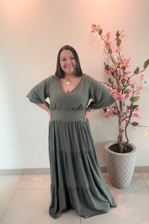 Vestido Plus Size Heloísa Viscose Verde Militar G1 G2 G3Vestido Plus Size Heloísa Viscose Verde Militar G1 G2 G3