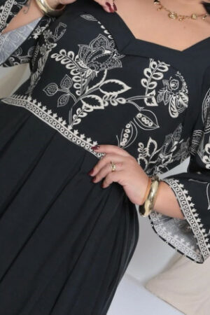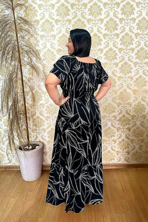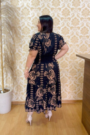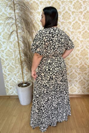 Vestido Longo Plus Size Thais Preto Estampado Viscose G2