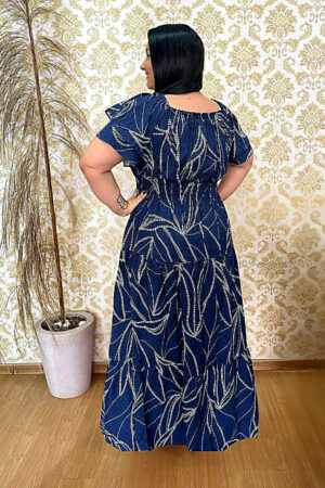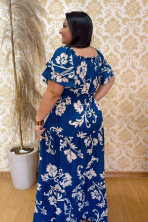 Vestido Longo Plus Size Helena em Viscose Azul G3