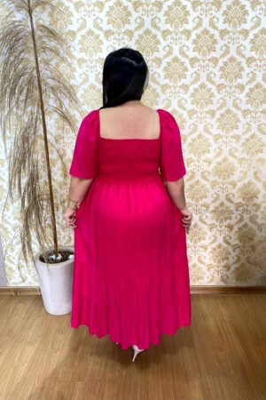 Vestido Midi Plus Size em Viscolinho Roberta Rosa