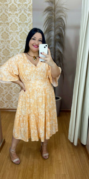 Vestido Midi Plus Size Eloah Laranja Florido G2 G3